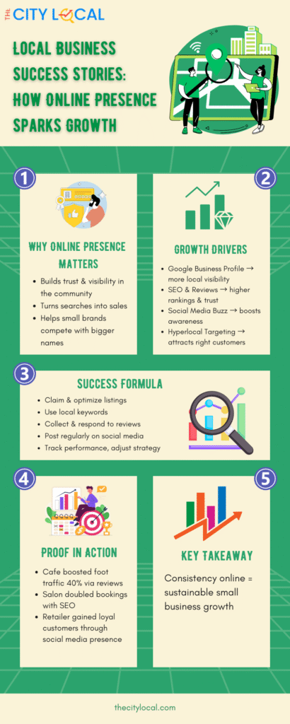 Each case highlights one key lesson: online presence for small business growth can be possible without running expensive campaigns. Consistency, relevance, and customer connection are the core ingredients.